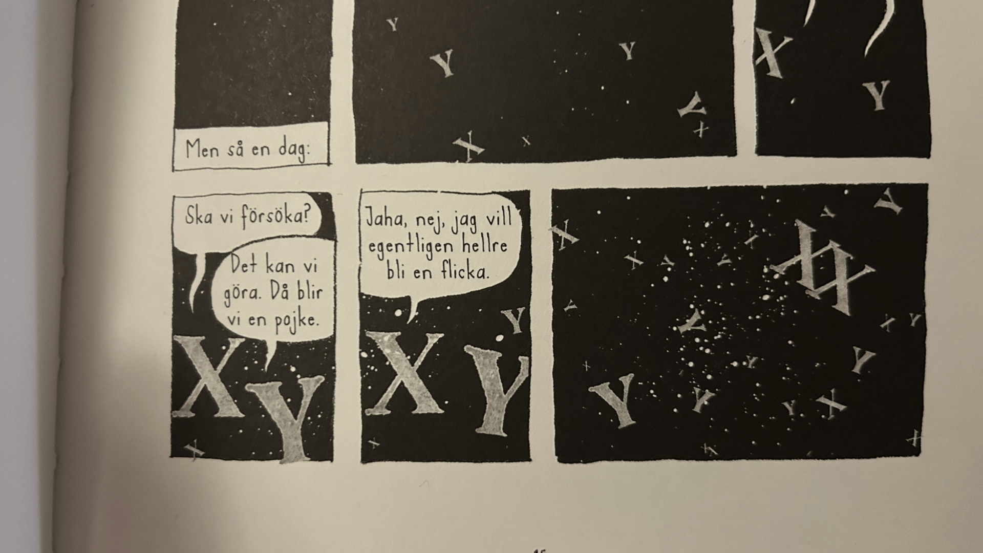 … är det fantastiskt hur Annette Herzog i sin seriebok Pssst! lyckas få Y:et att se lite ledset och förvånat ut här: